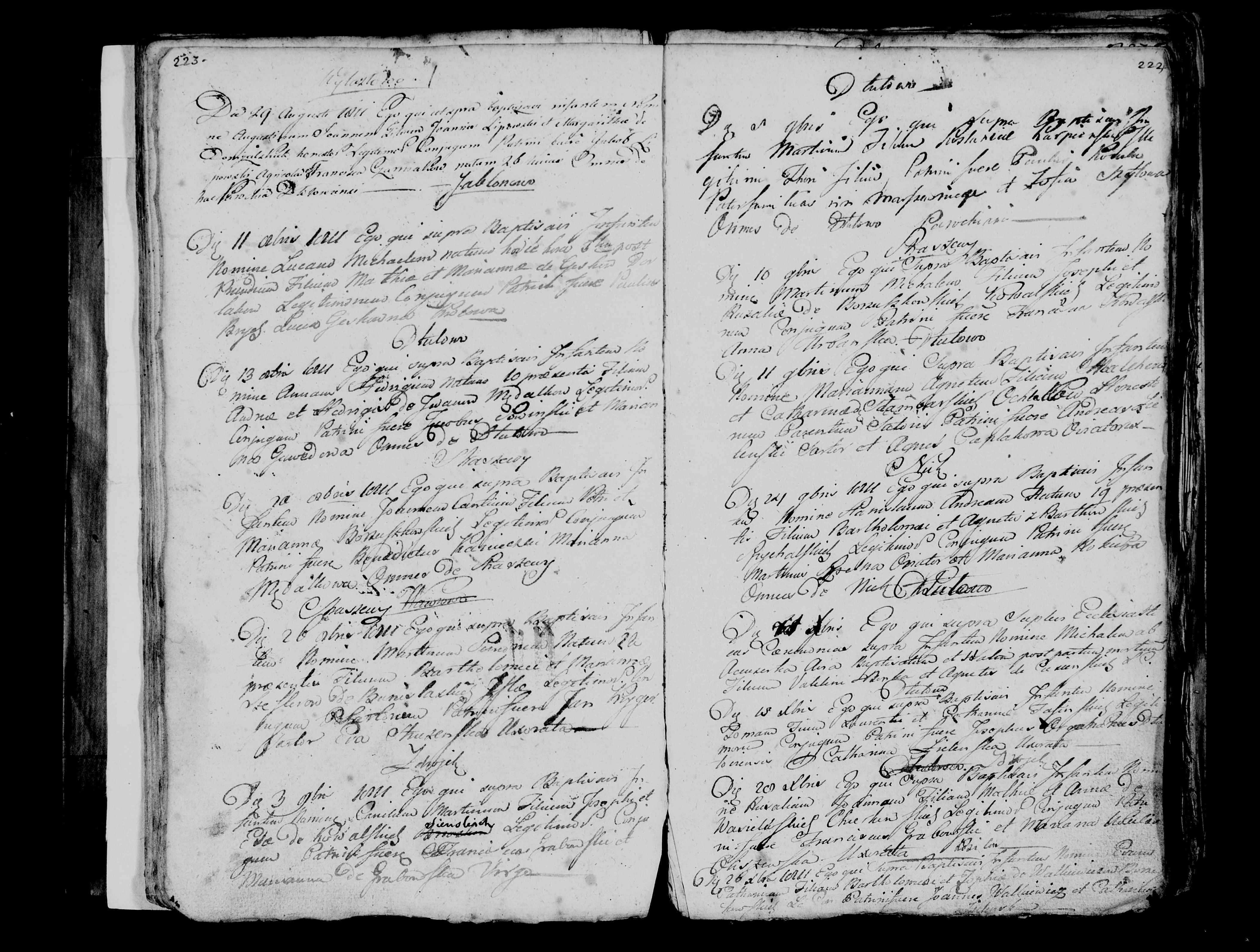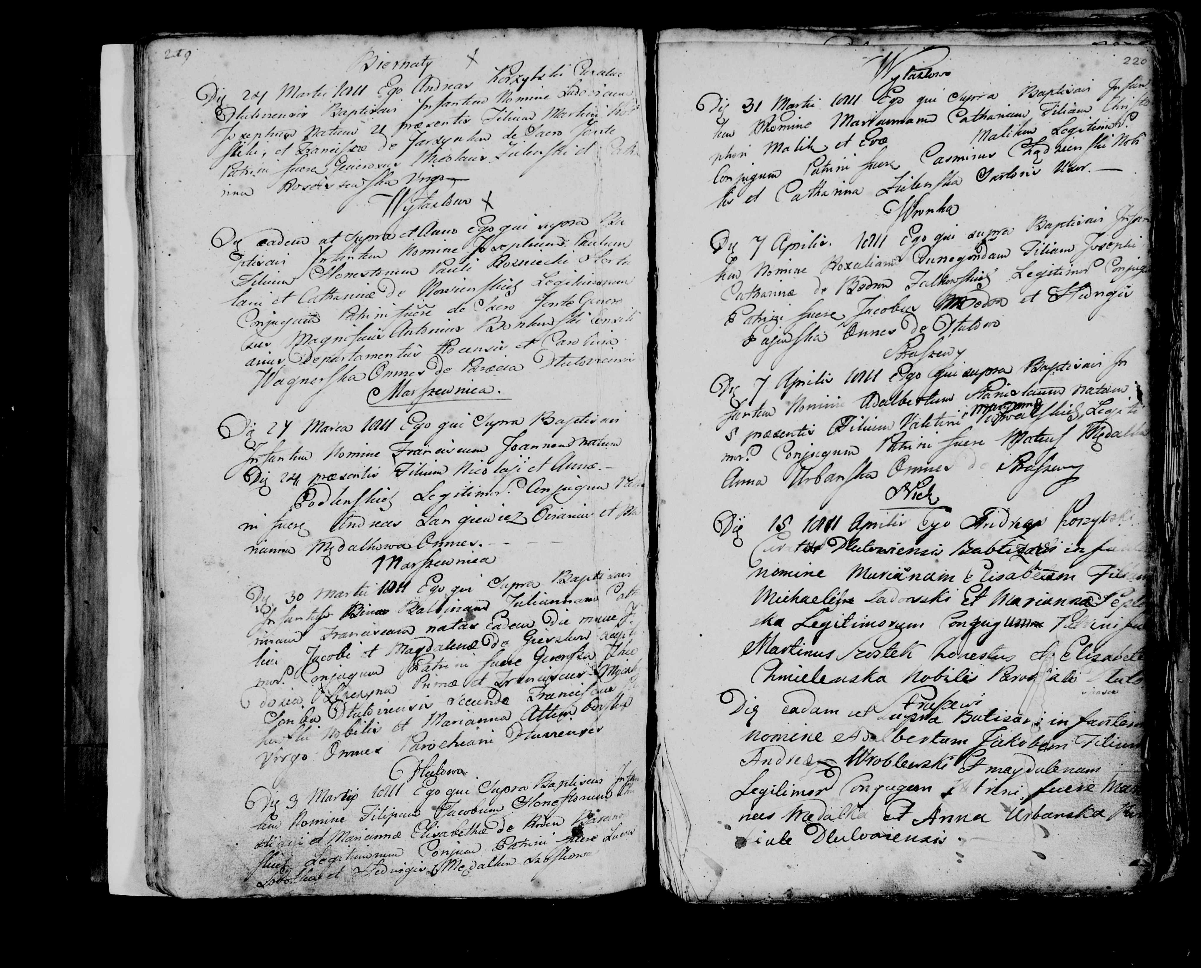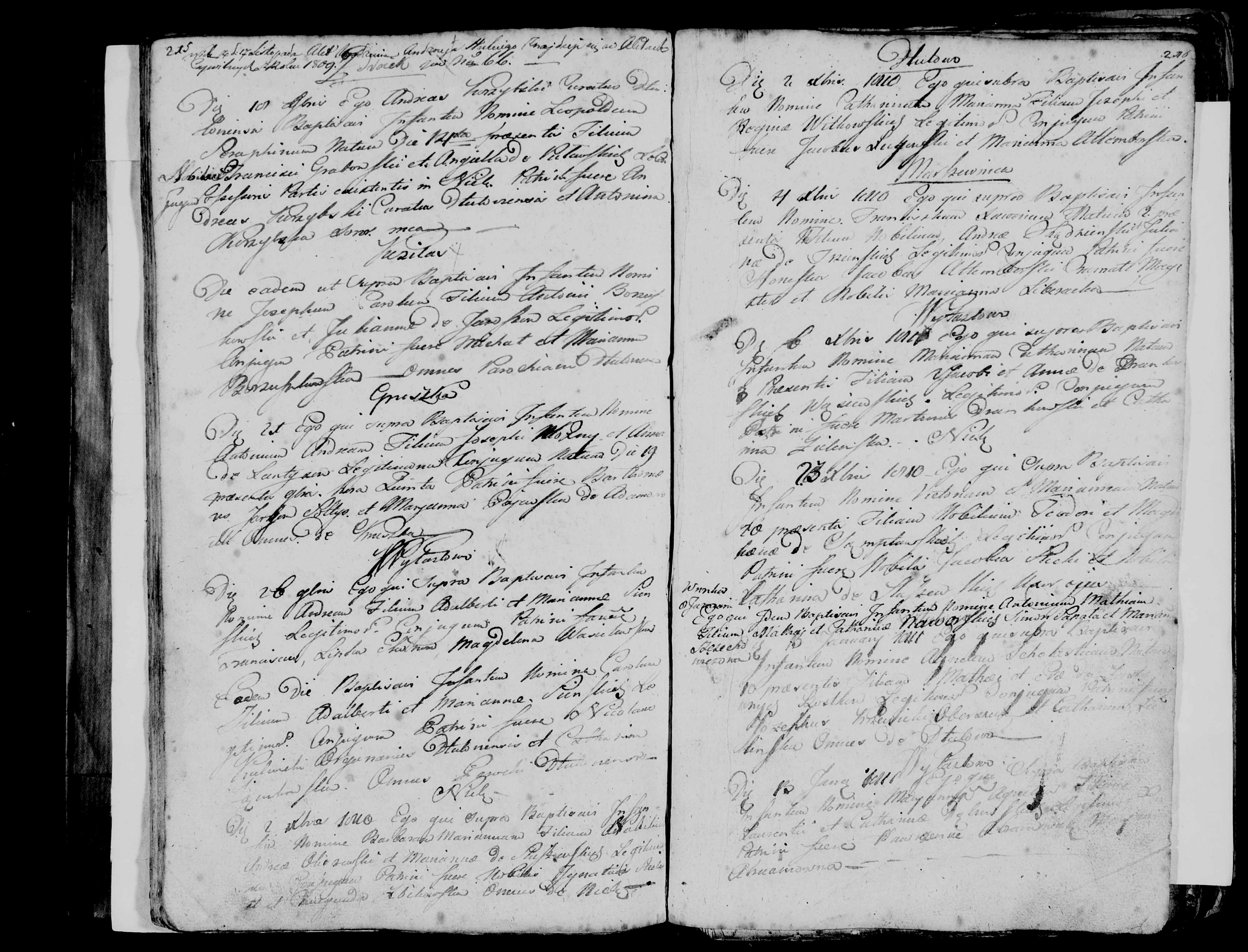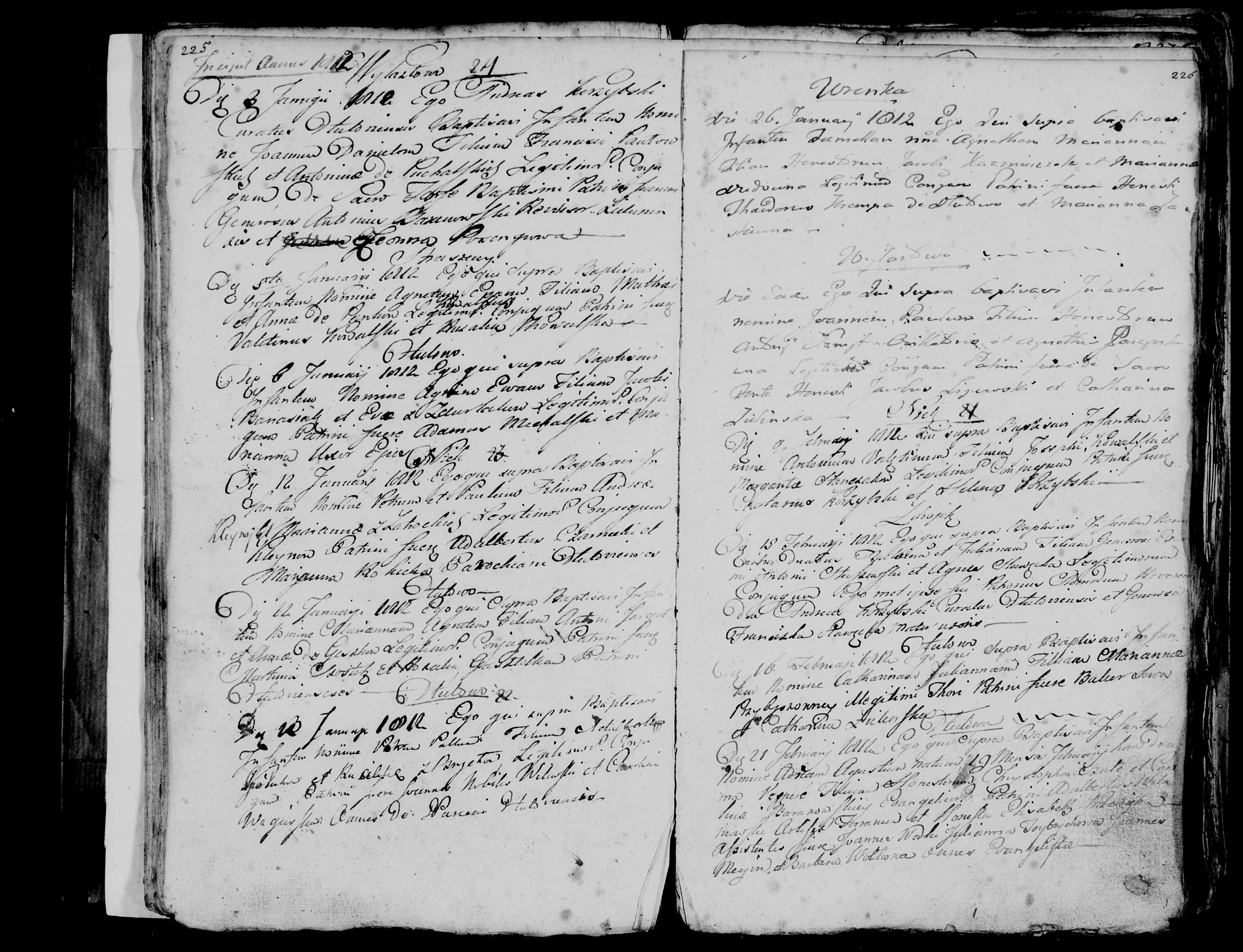 Poniższe skany (1, 2, 3, 4, 5, 6) powinny wg GeneTeka zawierać Akt Urodzenia Marianny Agnieszki Ochlak, córka Melchiora Ochlak i Katarzyny z domu Stąmbarska ze wsi Dłutowo. Niestety kolejne zapisy wg GeneTeka nazwiska i miejscowości różnią się od tego co widzimy, bo na skanach zapisywane są też śluby. Niemniej przypuszczam, że narodziny Agnieszki Ochlak też są. Dwukrotne kliknięcie na zdjęciu daje normalną, dużą wielkość tego skanu. Można go też zapisać przez Ctrl_S.