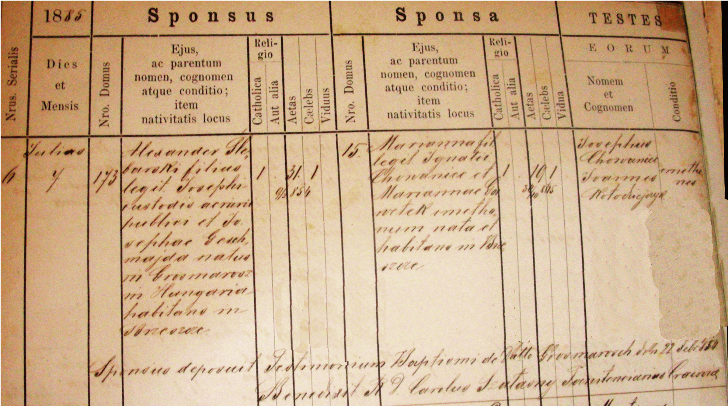 | m | G | Aleksander | Ślebarski | 1854-02-09 | †1919-04-16 | 65 | Józef | Józefa | Geschmaide | Marianna | 1885-07-07 | Chowaniec | ||
