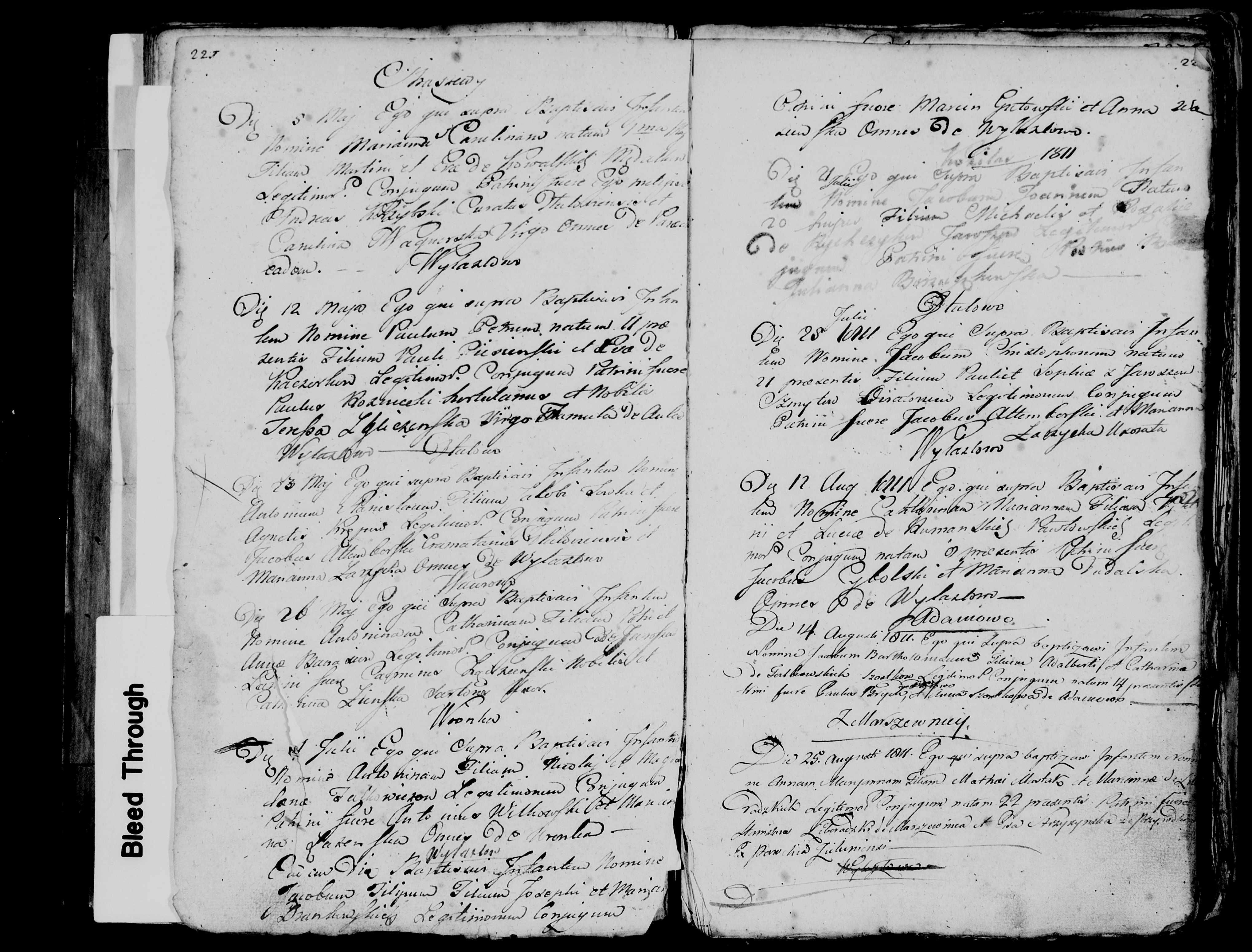 Poniższe skany (1, 2, 3, 4, 5, 6) powinny wg GeneTeka zawierać Akt Urodzenia Marianny Agnieszki Ochlak, córka Melchiora Ochlak i Katarzyny z domu Stąmbarska ze wsi Dłutowo. Niestety kolejne zapisy wg GeneTeka nazwiska i miejscowości różnią się od tego co widzimy, bo na skanach zapisywane są też śluby. Niemniej przypuszczam, że narodziny Agnieszki Ochlak też są. Dwukrotne kliknięcie na zdjęciu daje normalną, dużą wielkość tego skanu. Można go też zapisać przez Ctrl_S.